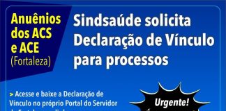 Anuênios – Sindsaúde solicita de ACS e ACE de Fortaleza documentação para processos