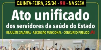 Servidores realizam ato unificado na Secretaria Estadual da Saúde nesta quinta-feira, 25/04