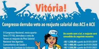 Derrubado o veto ao reajuste salarial dos ACS e ACE