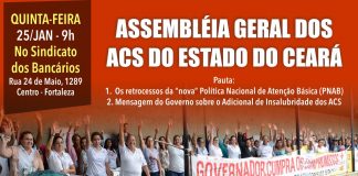 ACS do Estado participam de Assembleia Geral nesta quinta-feira, 25/01
