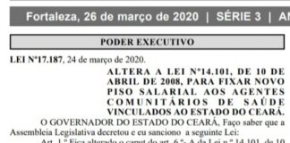 Publicado a Lei que trata sobre o reajuste dos Agentes Comunitários de Saúde vinculados ao Estado