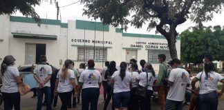 Agentes Comunitários de Saúde paralisam o trabalho e fazem manifestação em frente à prefeitura de Santana do Cariri