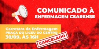 Comunicado à enfermagem cearense: Carreata é cancelada
