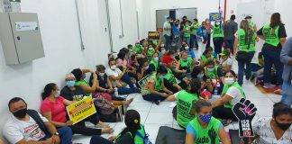 Após passarem a noite no prédio da SMS, servidores da saúde de Fortaleza mantém greve