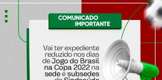 Sindsaúde informa sobre horário de expediente nos dias de jogo do Brasil na Copa
