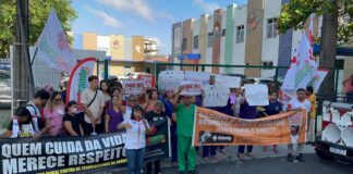 Sindsaúde Ceará lidera protesto de trabalhadores e pais por pagamentos em atraso e falta de insumos no SOPAI