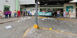 Servidores, permissionários e comerciantes realizam abraço simbólico no Hospital César Cals e cobram reabertura segura da unidade