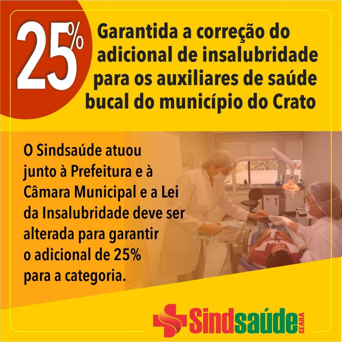 O fato foi denunciado durante reunião com a presidente do Sindsaúde, Marta Brandão. As servidoras afirmaram se sentir injustiçadas com a nova lei e pediram ajuda para tentar corrigir essa injustiça. Em resposta, o Sindsaúde encaminhou um ofício à Prefeitura e Secretaria da saúde de Crato solicitando audiência para discutir o assunto. Além disso, foi elaborada e entregue aos vereadores uma carta aberta pedindo o apoio dos parlamentares para que fizessem a alteração, garantindo os 25% de adicional de insalubridade para auxiliares de saúde bucal.