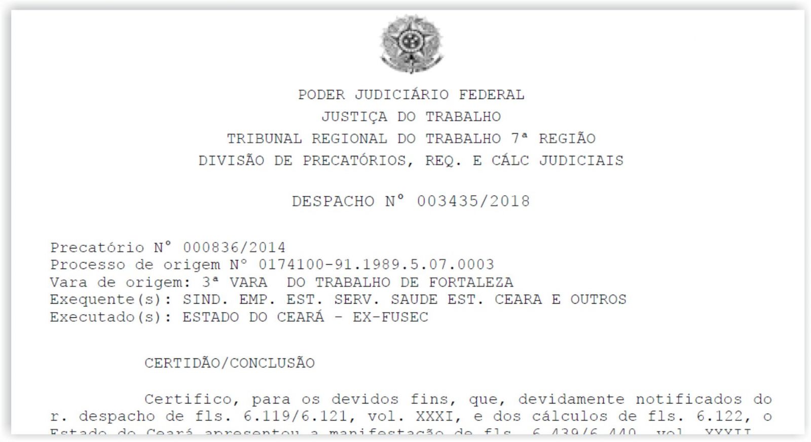 De acordo com o despacho nº 003435/2018 o Tribunal Regional do Trabalho liberou pagamento de seis pessoas que têm preferência no processo da Fusec. Veja o despacho e planilha de cálculo aqui: