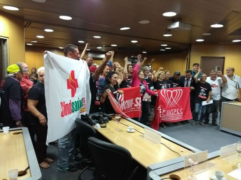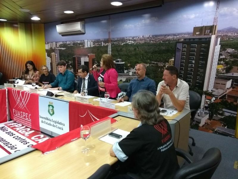 Foi realizada nesta quinta-feira, 09/11, no complexo das comissões da Assembleia Legislativa do Ceará uma audiência para discutir sobre a campanha salarial dos servidores públicos do Estado. A audiência foi requerida pelo deputado estadual Carlos Felipe, atendendo a pedido do Fórum Unificado das Associações e Sindicatos dos Servidores Públicos Estaduais do Ceará, Fuaspec. A categoria reivindica 20,02% de reajuste salarial com reposição de perdas. Os servidores estão há dois anos sem receber sequer as perdas com a inflação. Dirigentes do Sindsaúde participaram da audiência, destacando as perdas para os servidores da saúde, que além de não ter os salários reajustados minimamente com a reposição da inflação, agora amargam mais perdas na remuneração com corte de horas extras e redução de plantões de final de semana.