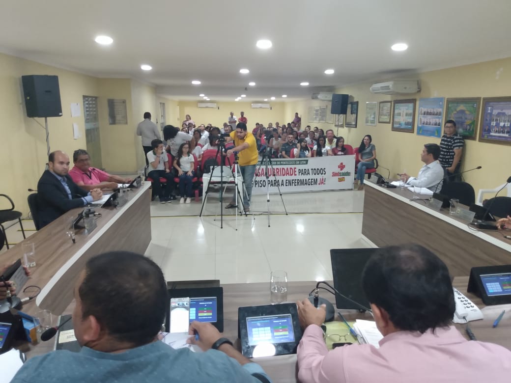 Nesta segunda-feira, 04/11, o Sindsaúde Ceará, representado pelos diretores Messias Carlos e Quintino Neto, participou de sessão na Câmara Municipal de Pentecoste, onde foram apresentadas as demandas dos servidores do nível médio da saúde de Pentecoste, que cobram da gestão municipal o pagamento do adicional de insalubridade para todos os servidores da saúde, anuênio, licenças prêmio, adicional noturno e piso salarial para a enfermagem, além do cumprimento do Plano de Cargos e Carreiras previsto em lei municipal.