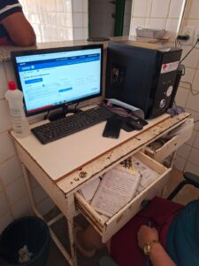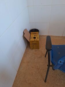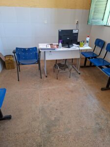 Outro absurdo é o Descartex, recipiente usado para o descarte de materiais perfurocortantes, estar depositado no chão, exposto e acessível, configurando uma prática completamente insegura e inaceitável. O risco de acidentes e contaminações é evidente, refletindo uma grave negligência com a segurança dos profissionais da Atenção Básica.